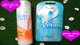 Next up I use the Korres Watermelon Body Scrub, apart from the fact it smells delicious it’s an amazing exfoliant! I always use a scrub before I shave my legs as it removes any dry skin and lifts the hairs allowing for a closer shave and resulting in lovely smooth legs. To shave my legs I use a Gillette Venus Razor and Gillette Satin Care Radiant Apricot Shave Gel. Both of these are part of my bathroom staples. My legs always feel great after using them, and I really like the apricot smell.